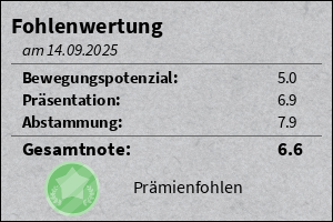 Kleiner brauner Boss auf vier Hufen, der schon mit einem Huftritt klarmacht, wer hier das Sagen hat. Während andere Fohlen noch wackelig durchs Leben tapsen, zeigt der schon jetzt: Haltung, Power und ’ne Portion Frechheit im Komplettpaket. Wenn der mal groß ist, macht er garantiert nicht nur im Viereck eine gute Figur. Klar, der kleine Charmeur weiß eben schon jetzt, wie man die Bühne rockt!